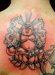 This lil lucky Buddah went on the back of this kid's neck. I enjoyed doing this one...fat people are fun to shade.